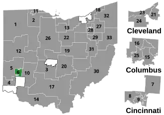 Ohio's 6th senatorial district has always been based in Dayton, Ohio. It consists of about two-thirds of Montgomery County. It encompasses Ohio House districts 38, 39 and 40. It has a Cook PVI of D+4 following redistricting in 2023. Its current Ohio Senator is Democrat Willis Blackshear Jr. He resides in Dayton, Ohio, a city located in Montgomery County, Ohio.
