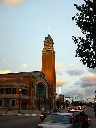 The salient feature of Ohio City's business district is the historic West Side Market, built in 1912. The European-styled market, located at the intersection of Lorain Avenue and West 25th Street, draws an estimated one million visitors annually.[6] Located north of the West Side Market is The Ohio City Fresh Food Collaborative, one of the largest contiguous urban farms in America. The operation includes a farm, retail farm stand and community kitchen on a 6-acre city parcel.[7] Ohio City chef Parker Bosley was an early farmer's market supporter.[8]