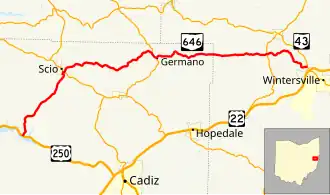 The US 250-Scio segment was added to the state system in 1947.[7] Since then, no major changes have occurred to the routing.