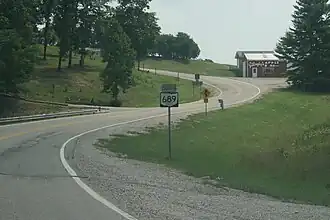 SR 689 first appeared in 1937 along the routing that it currently occupies.[3][4] Originally, its northern terminus was at a two-lane SR 346, the predecessor to SR 32. In the early 1970s, the construction of the Appalachian Highway (originally numbered SR 346 at its completion, later renumbered to SR 32) truncated the highway very slightly at its northern terminus.[5][6] No other major changes have occurred to the routing since then.