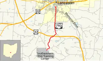 State Route 793 (SR 793) was a state route in the US state of Ohio that served as a connector route from Southeastern Ohio Training Center near Lancaster through Fairfield County to U.S. Route 33 (US 33) in Lancaster. SR 793 was originally designated in 1959. The route was decommissioned in 2006.