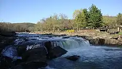 Various tribes, including the Shawnee, Lenni Lenape, and Seneca people, inhabited the Ohiopyle area during the 18th century, but were ultimately removed after the French and Indian War. One of the few remnants of American Indian culture in the area is the name. "Ohiopyle" is derived from the Lenape phrase ahi opihəle, which means 'it turns very white',[6][7] referring to the frothy waterfalls.[8][9]