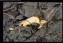 Crude oil entering waterways from spills or runoff contain polycyclic aromatic hydrocarbons (PAHs), the most toxic components of oil. The route of PAH uptake into fish depends on many environmental factors and the properties of the PAH. The common routes are ingestion, ventilation of the gills, and dermal uptake. Fish exposed to these PAHs exhibit an array of toxic effects including genetic damage, morphological deformities, altered growth and development, decreased body size, inhibited swimming abilities and mortality.[1][2][3] The morphological deformities of PAH exposure, such as fin and jaw malformations, result in significantly reduced survival in fish due to the reduction of swimming and feeding abilities.[1] While the exact mechanism of PAH toxicity is unknown, there are four proposed mechanisms.[4] The difficulty in finding a specific toxic mechanism is largely due to the wide variety of PAH compounds with differing properties.[4]