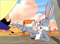 In a final twist, Bugs' ingenious solution results in a surprising outcome: instead of oil, a geyser of carrots erupts from the hole, leaving Devil Rich Texan and Maverick bewildered and Bugs triumphant. With a nod to the absurdity of the situation, Bugs acknowledges the incredulity of the audience, reminding them that in "Tex-ay-us," anything can happen.