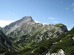 Ojstrica (2,350 meters or 7,710 feet) is a mountain in the eastern part of the Kamnik Alps with a pyramid-shaped top that is visible from far away. The name Ojstrica derives from the Slovene word oster 'sharp'. There is a 600-meter (2,000 ft) high wall on its northern side to the bottom of the Logar Valley. The eastern side, down to the Roban Cirque (Slovene: Robanov kot), also has a high wall. There are several climbing routes.