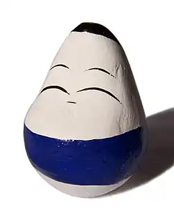 Okiagari-koboshi or Okiagari-kobōshi (起き上がり小法師; getting-up little boy) is a Japanese traditional doll. The toy is made from papier-mâché and is a roly-poly toy, designed so that its weight causes it to return to an upright position if it is knocked over.[1] Okiagari-kobōshi is considered a good-luck charm and a symbol of perseverance and resilience (including for Daruma versions).[2]