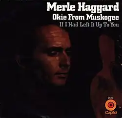 "Okie from Muskogee" is a song recorded by American country music artist Merle Haggard and The Strangers, which Haggard co-wrote with drummer Roy Edward Burris. "Okie" is a slang name for someone from Oklahoma, and Muskogee (population 40,000) is the 13th largest city in the state. The song was released in September 1969 as first single and title track from the album Okie from Muskogee, and was one of the most famous songs of Haggard's career.