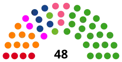 Its 48 members are elected every four years in 14 districts by single non-transferable vote (SNTV). 13 electoral districts are multi-member district, one district is a single-member district where SNTV becomes equivalent to First-past-the-post voting.