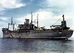 - 16 ammunition ships: Akutan, Firedrake, Lassen, Mauna Loa, Shasta, Vesuvius, Wrangell, Canada Victory (sunk by kamikaze 27 Apr) Bedford Victory, Bucyrus Victory, Manderson Victory, Las Vegas Victory, Logan Victory (sunk by kamikaze 6 Apr), Greenburg Victory, Pierre Victory, Hobbs Victory (sunk by kamikaze 6 Apr)