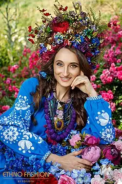 ![]() Oksana Stepanyuk in the project Ethno Fashion by Potlova | |