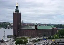 Ragnar Östberg's design for the Stockholm City Hall (completed in 1923) is thought to be an influence on the auditorium's design. It is also said to resemble Kronborg Castle in Denmark, Carfax Tower in the center of Oxford, and Magdalen Tower at Magdalen College, Oxford.
