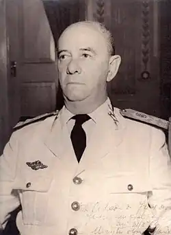 Mourão judged that there was no real risk of impeding Juscelino Kubitschek's inauguration, and therefore Lott's countercoup was unnecessary to guarantee it.[42] As he had good relations with the new president, who was also from Diamantina, Mourão was promoted to brigadier general on 25 March 1956, in one of the two vacancies freely chosen by the president.[43] As a general, Mourão commanded the Divisional Infantry of the 4th Infantry Division, in Belo Horizonte, from 1956 to 1957 and headed the Directorate of Social Assistance, in Rio de Janeiro, between 1957 and 1961.[29]