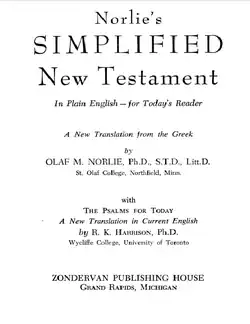 - ^ "Olaf Norlie's Simplified New Testament". International Society of Bible Collectors. Retrieved November 12, 2015.