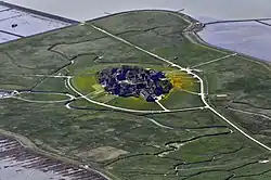Oland (German pronunciation: [ˈoːlant] ⓘ; Danish: Øland, North Frisian: Ualöönist) is a small Hallig of the North Frisian Islands which is connected by a narrow-gauge railway to the mainland and to Hallig Langeneß. In 2019, the population was estimated, unofficially, to be 16 people.[1]