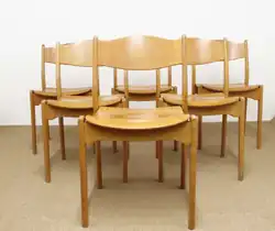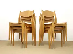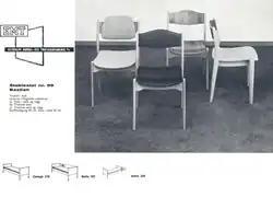 The Bastian chair was manufactured with and without armrests, its frame was mainly made in beech wood with leatherette and wool upholstery or bare wood veneer. The chair was stackable and well suited for assembly halls, meeting rooms, offices and receptions areas. Haug was personally convinced that quality and durability would win him sales, so all his chair designs underwent a thorough durability test at the Norwegian Institute of Wood Technology. All chairs produced by Haug scored the highest rankings for durability, quality and construction methods.