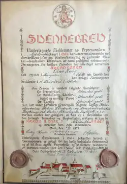 - 1942: Awarded a diploma in carpentry and cabinetmaking presented in Oslo in 1941 and approved in 1942 Oslo