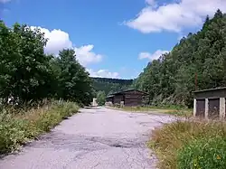 This was only a halt with a platform along the line (50°37′00″N 13°25′24″E / 50.616736°N 13.423364°E), a waiting room in the same layout as that in Niederlochmühle that was still present in 1997, but has been demolished since,[3] a toilet, and an old wagon body as a storage room. Until 1947 it was operated by an agent and had limited freight and parcel services, from then on it was unstaffed. Immediately after the station followed Oberlochmühle viaduct, the largest bridge on the line.