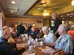 As of 2014, membership has grown to over 300 people, although attendance at the weekly breakfast is typically 50–70 people.[6] According to the group's web page, an annual Christmas party and periodic barbecues are also hosted.[8] As of 2022, the Old Bold Pilots Association continues to meet every week at Denny's restaurant, with attendance back to pre-pandemic levels.[9]