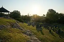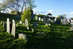 Old Burial Hill is a historic cemetery in Marblehead, Massachusetts. It is located on the high ground between Marblehead's colonial-era residential and retail district, called "Downtown" by longtime residents and "Old Town" by others, and the Barnegat neighborhood that stretches from Little Harbor to Doliber's Cove, and is accessible via a walkway at Redd's Pond and a stairway at the intersection of Orne and Pond streets. It was the location of Marblehead's First Meeting House built around 1638.[1] Old Burial Hill features scenic vistas of Marblehead Harbor and Salem Sound.