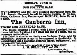 In 1887, he decided to sell his property and advertised it in the newspapers. The advertisement is shown. At this time, the Old Canberra Inn was described in the following terms.