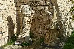 The site of the old parish church remained the property of the ecclesiastical authorities.[3] The ruins were eventually neglected and used for agricultural purposes, with parts of the structure being buried under soil.[2] An orchard with fruit trees and prickly pears was established on the site.[3][4] Part of the sacristy was converted into a dwelling, and it did not fall into ruin like the rest of the church.[6] A stone cross known as is-Salib tad-Dejma was built nearby, probably to mark the location of the former church,[7] and a niche with a relief of Saint Mary and souls was installed above a doorway leading to the ruins.[8]
