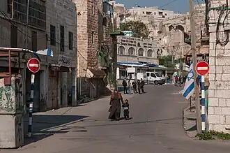 The Palestinian population in H2 has greatly declined because of the impact of Israeli security measures, including extended curfews, strict restrictions on movement,[26] and the closure of Palestinian commercial activities near settler areas, and also due to settler harassment.[27][28][14][15] Palestinians are barred from using Al-Shuhada Street, a principal commercial thoroughfare that is locally nicknamed "Apartheid Street as a result.[29][30]