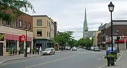 Old Longueuil was named a heritage district by the city in 1993, and features 450 buildings built before 1945.[1] Many historic buildings are found in this district, such as the Co-Cathedral of Saint-Antoine-de-Padoue, the ruins of Fort Longueuil,[2] and Saint Mark's Anglican Church. Rue Saint-Charles, one block inland from the Saint Lawrence River, is the main street in this neighbourhood and features many small businesses, among them restaurants, bars, and corner stores. The borough hall of Le Vieux-Longueuil borough is also in the neighbourhood.