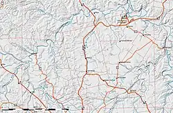 The French sent a series of ill-equipped mining expeditions into what is now Missouri to search for silver, which is sometimes found with lead ore. One expedition was led by Jacques sieur de Lochon, a Parisian and a smelter, and another was led by sieur La Renaudière.[9] Neither expedition produced much to show for their efforts, although Renaudière was able to smelt some poor-quality lead. In 1720 Philippe François Renault arrived with professional miners. Renault found and successfully worked large quantities of lead on the "Merameg" in what is now the Old Mines region.[10] Renault received a grant in 1723 for one and a half leagues along the Petit Merrimac and extending up the first tributary (la première branche) six leagues for a total of 9 square leagues.[8] The exact location of Renault's grant and mines is not known, but the "first branch" could be Fourche à Renault Creek, with the mines perhaps at Ebo, or it could be Old Mines Creek with the mines at Old Mines itself.[11] Renault's mines were worked until the 1730s, were closed for some years, and reopened in 1743. Old Mines existed as a village of some sort by 1748 when it was listed as the residence of a coupled married at Fort de Chartres, given as village des mines.[11]