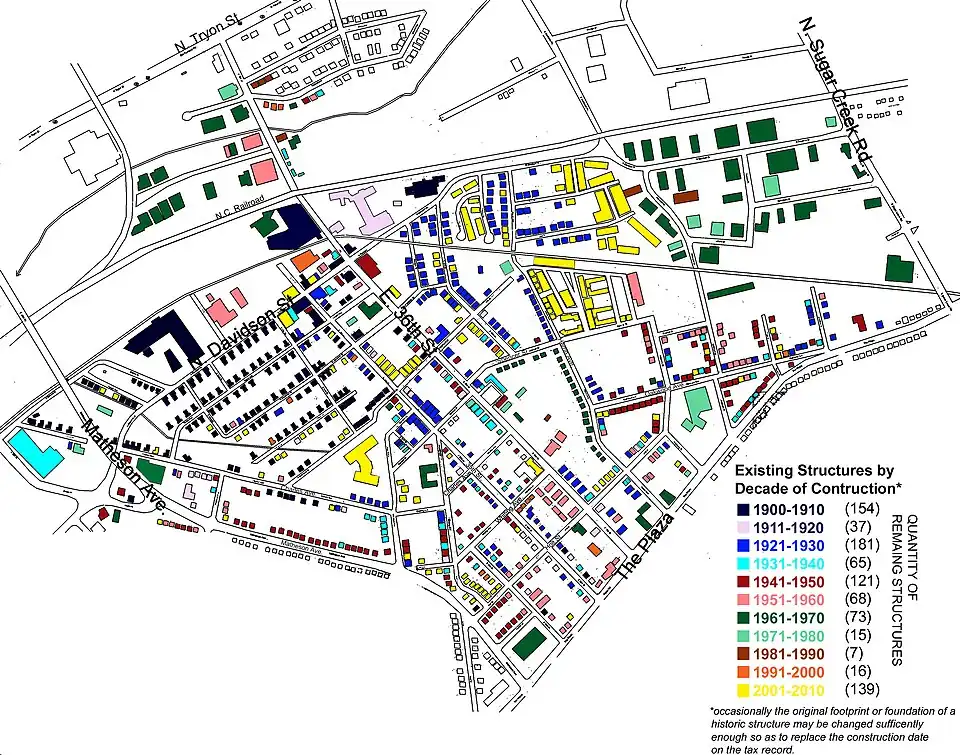 Map showing the on-file construction dates of every structure in Old N. Charlotte