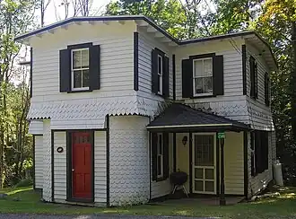 Old Platte Clove Post Office is a historic post office building located at Elka Park in Greene County, New York. It was built about 1885 and is a light wood balloon frame Victorian-era T-shaped structure that served a residence and post office. It was used as a residence and post office from 1888 to 1911.[2]