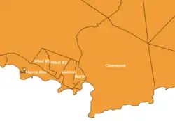 Old Road is located in the southwestern portion of Antigua and is overlooked by the Shekerley Mountains. Old Road has six neighbourhoods and enumeration districts, Old Road North, Claremont, Old Road Central, Old Road Morris Bay, and the neighbourhoods of Old Road West #1 and #2. Morris Bay and Claremont are the two neighbourhoods with sea access, the other neighbourhoods are landlocked.[9] Old Road borders Urlings to the west, Boggy Peak enumeration district to the north, John Hughes to the north, and Swetes, Liberta, and Dieppe Bay to the east.[9]
