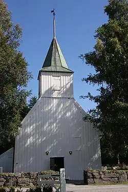 Old Søgne Church (Norwegian: Søgne gamle kirke) is a historic parish church of the Church of Norway in Kristiansand Municipality in Agder county, Norway. It is located in the southeastern part of the village of Tangvall. It was once the main church for the Søgne parish which is now part of the Kristiansand domprosti (arch-deanery) in the Diocese of Agder og Telemark. The white, timber-framed church was built in a long church design in 1640 using plans drawn up by an unknown architect. The church seats about 270 people.[1][2]