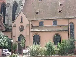 The Lutheran part of the church, presently owned and used by a congregation within the Protestant Church of Augsburg Confession of Alsace and Lorraine, also features some notable works of art, among which the wooden Renaissance relief "Holy Family" (1520s) by Hans Wydyz, classified as a Monument historique.[10]