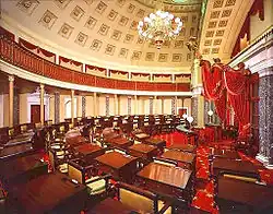 The Old Senate Chamber is a room in the United States Capitol that was the legislative chamber of the United States Senate from 1810 to 1859 and served as the Supreme Court chamber from 1860 until 1935. It was designed in Neoclassical style and is elaborately decorated.[1] In 1976 as part of the United States Bicentennial celebrations, it was restored to the appearance of when it served the Senate in the 1850s; it is preserved as a museum and for the Senate's use.[1]
