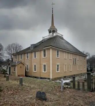 The Old Ship Church (also known as the Old Ship Meetinghouse) is a Puritan church built in 1681 in Hingham, Massachusetts. It is the only surviving 17th-century Puritan meetinghouse in the United States. Its congregation, gathered in 1635 and officially known as First Parish in Hingham, occupies the oldest church building in continuous ecclesiastical use in the country. On October 9, 1960, it was designated a National Historic Landmark, and on November 15, 1966, it was added to the National Register of Historic Places.[2][3]