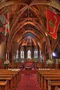 The flags displayed in the nave include the ensigns of the Royal Navy, the New Zealand Merchant Navy and the United States Marine Corps (second division), which was stationed in Wellington during World War II.[2] The church retains close links with the New Zealand Defence Force.