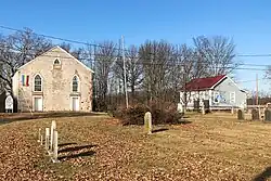 The Old Stone Church is a historic sandstone church located in Kingwood Township in Hunterdon County, New Jersey, United States. It was built in 1837 and is now owned by the First Unitarian Universalist Fellowship of Hunterdon County. The church, described using its historic name, Old Stone Presbyterian Church in Kingwood, was added to the National Register of Historic Places on January 25, 2018 for its significance in architecture. The earlier church located here was a smaller stone building built in 1755, called the Old Stone Meetinghouse. The stones from this church were probably used to build the current one.[3][4] The Kingwood congregation was established in 1728 and grew during the First Great Awakening, with Gilbert Tennent and George Whitefield preaching here in 1739.[3]
