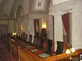 An 1854 diagram of the chamber was used to establish the layout and positioning of furniture in the chamber, and a portrait of John Marshall provided clues towards a mahogany railing and the carpet pattern. Still existing furnishings in the possession of the United States Capitol were sent to the chamber, as well as donated items such as Roger Taney's chair. By 1975, the chamber was opened to the public and has served as a museum ever since.[3]