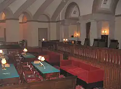 The Old Supreme Court Chamber is a room on the ground floor of the North Wing of the United States Capitol. From 1800 to 1806, the room was the lower half of the first United States Senate chamber. After construction of its vaulted ceiling divided it from the Senate chamber above, from 1810 to 1860 it served as the courtroom for the Supreme Court of the United States. The court then moved upstairs when the Senate moved to its present chambers, and this room became the law library. It has since been refurbished to look as it did when it served for court hearings.
