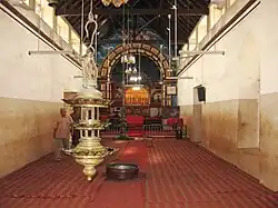 Architectural style is a blend of 18th Century Christian and Hindu temple architecture[4][5] and something fast disappearing from Kerala landscape. Its gopuravathil (gatetower), nadapanthal (porch), kalluvilakku (stone lamp) and doors are adorned with carved figurines, including a depiction of Hanuman holding a baton. This is indicative of communal and religious harmony exhibited by the localities in yesteryears.