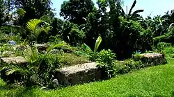In 2010, human remains were accidentally unearthed during the landscaping activities of the Club Balai Isabel Resort, which was brought to the attention of the National Museum of the Philippines.[1] The initial assessment of the archaeologists from the National Museum on the site prompted them to conduct an archaeological investigation. In 2011 systematic excavations were conducted within the ruins around the area where the human bones have been found and beside one of the walls. The excavations revealed evidences of major wall collapses on the upper stratigraphic levels of archaeological trenches, which occurred around 19th to early 20th century. On the lower layers of the trenches, articulated human burials and scatters of fragmented human bones have been recovered, suggesting the reuse of the church ruins as a cemetery, sometime after the 1754 eruption. Adobe structures and the stony foundation of the walls were also exposed during the excavation, revealing more of the masonry of the church ruins.[2]
