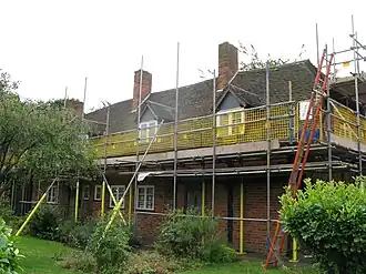 In 1625, it was divided into three cottages, with a floor inserted in the building's hall, and the walls infilled with brick. Part of the building accommodated the Overseer of the Parish, who was in charge of local administration and, being in an area known as "Town End", it became known as the Town Hall. During the early part of the 18th century the overseer was a James Underhill and he was succeeded by a Jeremiah Needham.[3][4] By the 19th century, the overseer of the parish was, among other matters, responsible for the maintenance of the village green.[5] The building was also used as a courthouse and was the local venue for hearings of the assizes.[6]