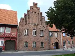 The Old Town Hall in Næstved, Denmark, dates from about 1450. It was extended with an extra floor in the 16th century. It is the only Danish medieval town hall building which exists today.[1] It is located next to St. Peter's Church.