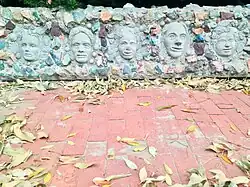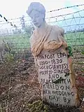 The creator of The Old Trapper's Lodge, John Ehn, was born in 1897 into a temporary lodging camp outside Viola, Michigan. [[14]1] Ehn left school in the 7th grade to care for his ailing father. It was said he worked a variety of jobs including: lumber mill, game warden, and trapper.[14] In 1941, Ehn and his family moved to California. By this time Ehn was partially disabled, suffering from spinal inflammation.[14] He opened a motel in Sun Valley called Old Trapper's Lodge. On the grounds of the motel, Ehn built a series of sculptures. Ehn was not a trained artist. However, after he commissioned a sculpture of himself by Claude Bell, a Californian theme park artist and sand sculptor, Ehn was inspired to use similar techniques. He drew inspiration from his family, and his passion for the Old West and it's mythology. [15] There are 7 monumental sculptures in total. In 1981, Old Trappers Lodge became a registered California Historical Landmark. The registry singled-out the work as an example of "remarkable 20th century art".[15] Ehn died shortly after, and his wife Mary died the next year. Their children ran the business until 1987, when the Burbank-Glendale-Pasadena Airport Authority bought the land to expand its runways. The Ehn family received a relocation settlement. [15] The family worked with SPACES foundation (Saving and Preserving Arts and Cultural Environments) to place smaller sculptures in museums. The foundation also helped look for a place for the larger sculptures including the Boot Hill Cemetery sculpture.[15] In 1988, an agreement, under the tutelage of then college president David Wolf, was made for Pierce College to place Old Trapper's Lodge on the campus in Alvin Cleveland Park. [15][14] Under the agreement Pierce College would receive the sculptures as a loan and would maintain them. [15]