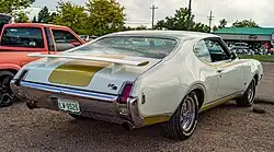 The first Hurst/Olds was the 1968 Hurst/Olds. It shared its body with the regular Oldsmobile Cutlass and 442, but had a unique Peruvian Silver and Black paint scheme. The Hurst/Olds was powered by a 390 hp (395 PS; 291 kW) @ 5000 rpm and a maximum torque of 500 lb⋅ft (678 N⋅m) @ 3200 rpm, 308° duration cam W-45 (without A/C) or 285/287° duration cam W-46 (with A/C), with a displacement of 455 cu in (7.5 L) Rocket V8, equipped with a single 4-barrel Rochester Quadrajet 4GC carburetor.[1][2] This engine was similar to the 400 hp (406 PS; 298 kW) W-34 455 engine offered in the Toronado and the 390 hp (395 PS; 291 kW) W-33 455 option available on the full-sized Delta 88. The W-45 and the milder W-46 engines differed in camshaft and cylinder head selection. The 455 was mated to a code OW three-speed Turbo-Hydramatic 400 transmission with console-mounted Hurst Dual-Gate shifter that permitted automatic or manually ratcheted shifting.[3]