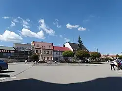 The Church of Saint Lawrence on the town square was originally a wooden church from 1391. The wooden church was burned down by the Hussites in 1424 and a new Gothic stone church was built in 1426. After the fire in 1827, the current structure was built in 1831–1839.[7]