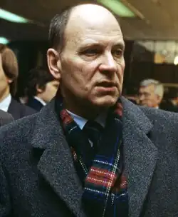Shenin was a member of the Central Committee of the Communist Party of the Soviet Union; he was also a member of the Politburo and Secretariat from 1990 to 1991. During the Soviet coup attempt of 1991, he was a member of the group of CPSU CC members who tried to regain control of the country in order to re-establish the Soviet Union.[2] On 23 August he was jailed for his involvement in the events.[3] In October 1992, for health reasons, he was released with a change in the preventive measure to a recognizance not to leave.[4] He was given amnesty in 1994.[5]