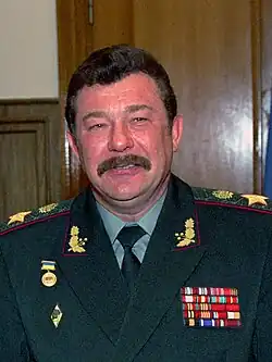 Oleksandr Ivanovych Kuzmuk (Ukrainian: Олекса́ндр Іва́нович Кузьму́к; born 17 April 1954) is a Ukrainian politician and military commander, who was a member of the Party of Regions and also served as Minister of Defence of Ukraine on two occasions, from 1996 to 2001 and from 2004 to 2005. Kuzmuk formerly commanded the National Guard of Ukraine (1995–1996) and holds the highest rank in the Ukrainian military, General of the Army of Ukraine (1998).