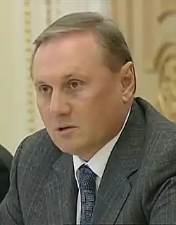 Oleksandr Serhiyovych Yefremov (Ukrainian: Олександр Сергійович Єфремов, Russian: Александр Сергеевич Ефремов, born in 22 August 1954) is a Ukrainian former parliamentarian and politician. A former governor of the Luhansk Oblast, from 2010 until 2014 he was Party of Regions's faction leader in the Verkhovna Rada (Ukraine's parliament).