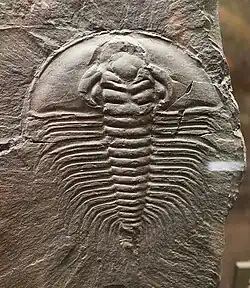 Olenellus is an extinct genus of redlichiid trilobites, with species of average size (about 5 centimetres or 2.0 inches long). It lived during the Botomian and Toyonian stages of the Lower Cambrian (Olenellus-zone), 522 to 510 million years ago, in what is currently North America, part of the palaeocontinent Laurentia.[4]